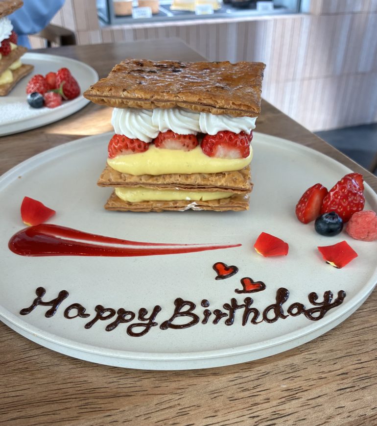 ミルフィーユのお店はオープンしたばかりということもあり、2時間ほど待ちましたが、それでも「待ってよかった」と思える美味しさでした。